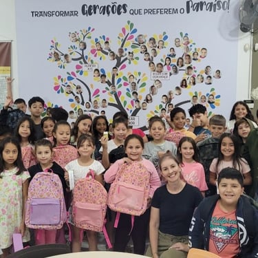E, em janeiro de 2024, realizamos uma nova ação no São Felipe Néri, uma associação sem fins lucrativos, onde entregamos mochilas para as crianças atendidas. Um momento especial, cheio de sorrisos e esperança no início de um novo ano.